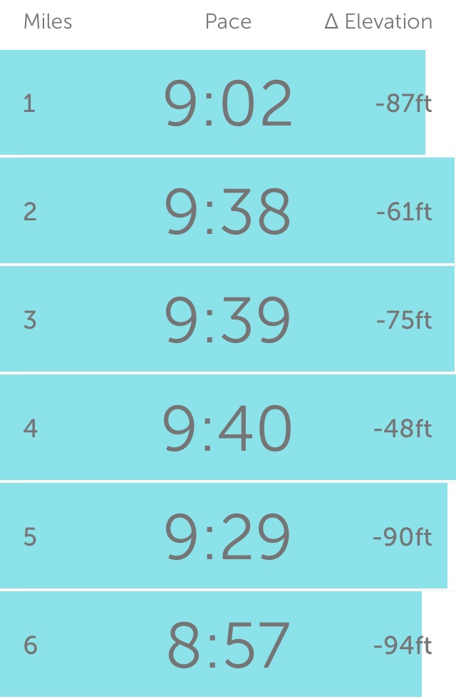 I set my Run Keeper to update me every five minutes and I think this really helped me maintain a good pace throughout the race.