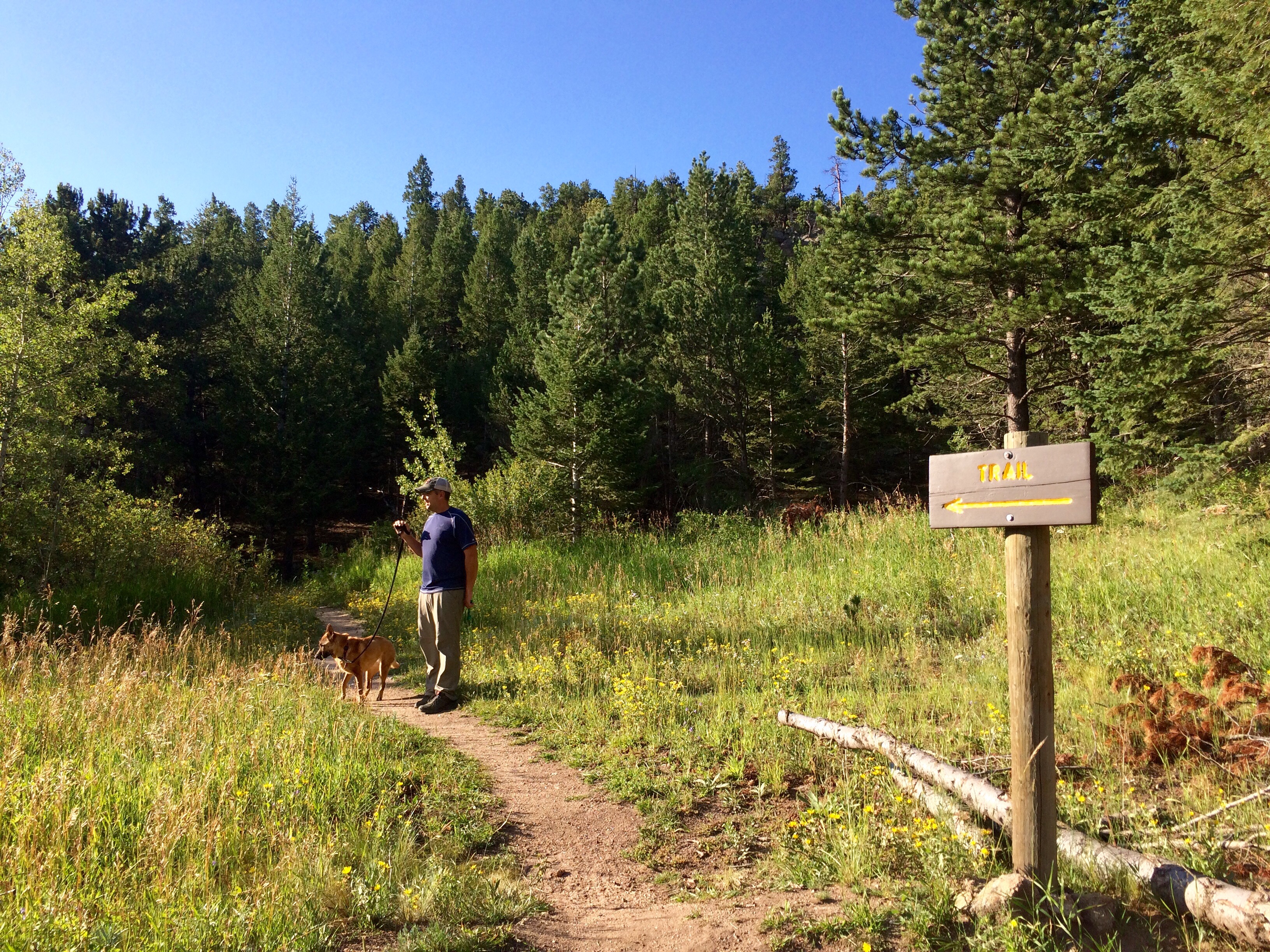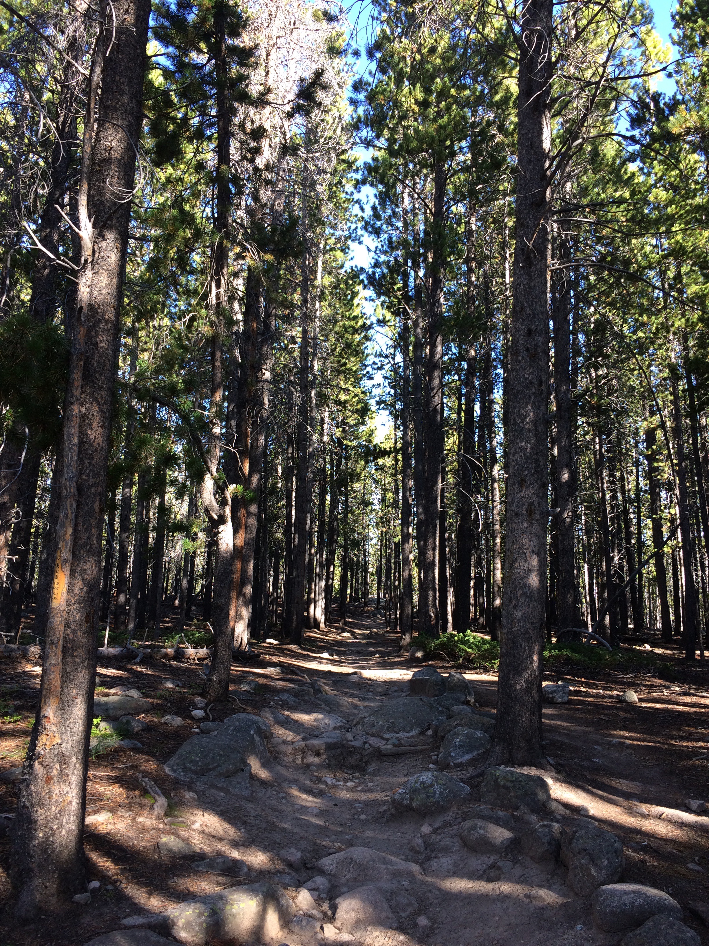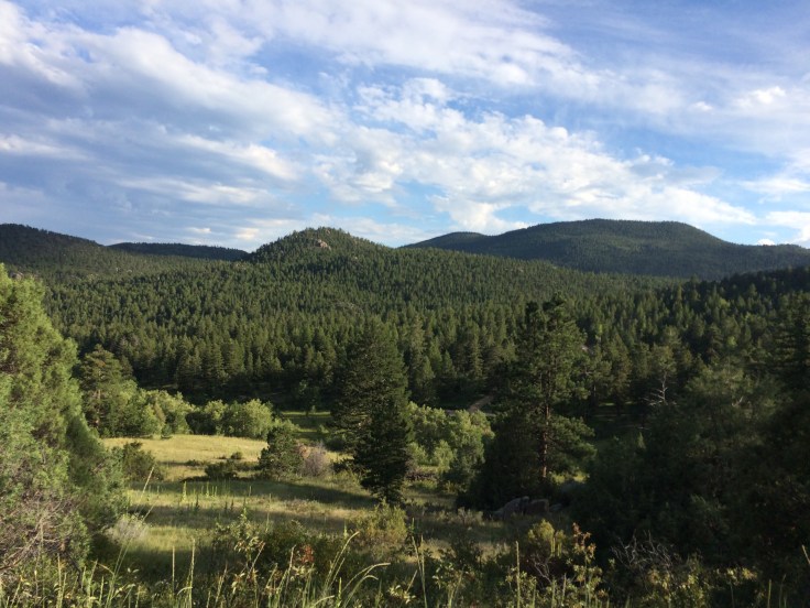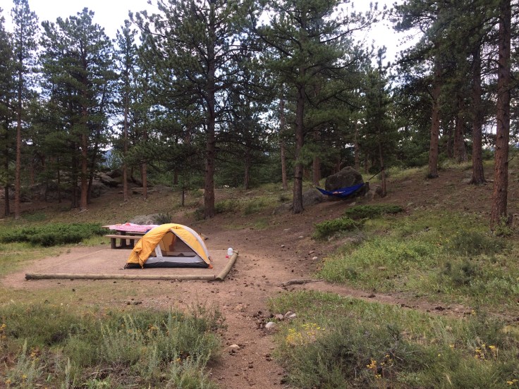Early Saturday morning, as I headed out to work, Aaron got in his truck and headed north 70 miles to the town of Estes Park (essentially the gateway to Rocky Mountain National Park), to hunt down a campsite for us for the night. About halfway through my shift I got a text from Aaron that he had scored a campsite at Hermit Park Open Space along with this picture from a trail that he had hiked within the campground….
