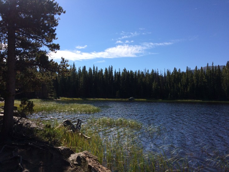 Once at the top, the trail levels out a bit and leads you through the tall trees to a loop trail around the lake. For awhile there, I was seriously asking myself, “did I miss something? Where is this damn lake?” You have to hike another half mile or so (I went left at the fork) on the loop trail before you get to open views of the lake itself.