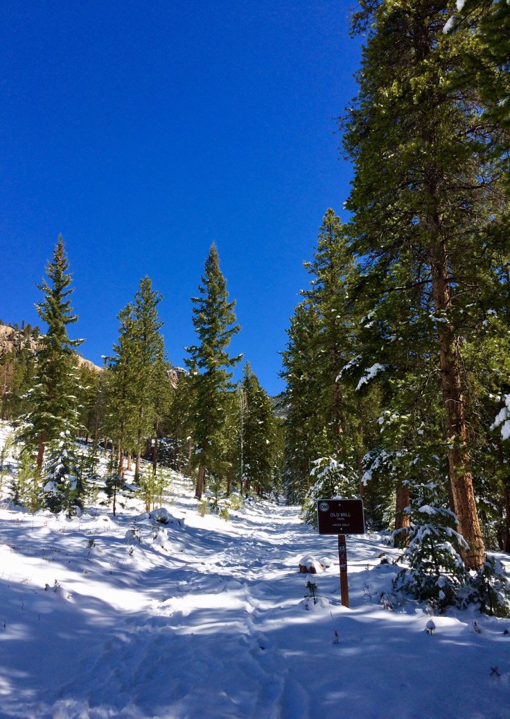 When we reached the Old Mill Trail, we also arrived at the deeper snow.